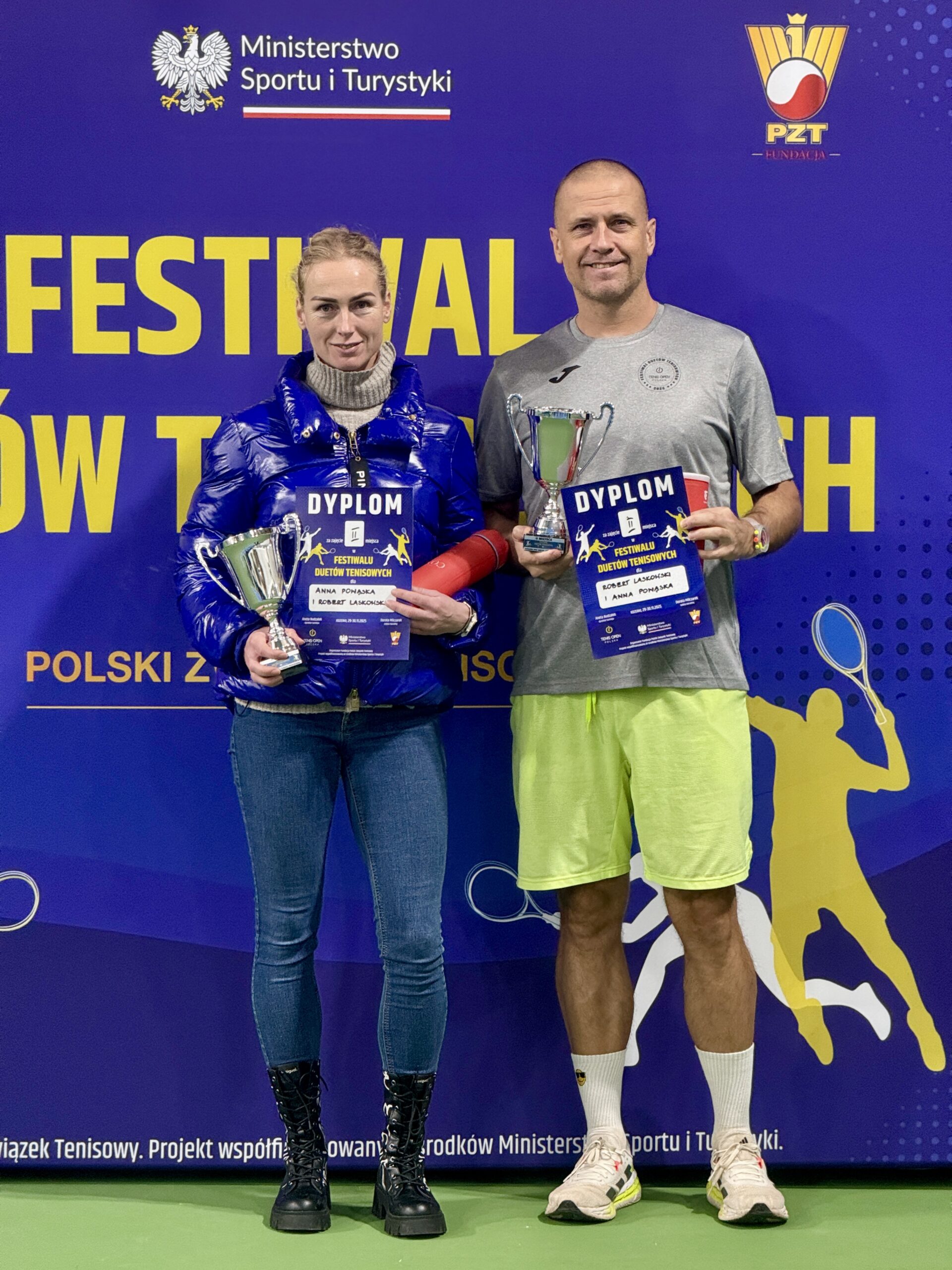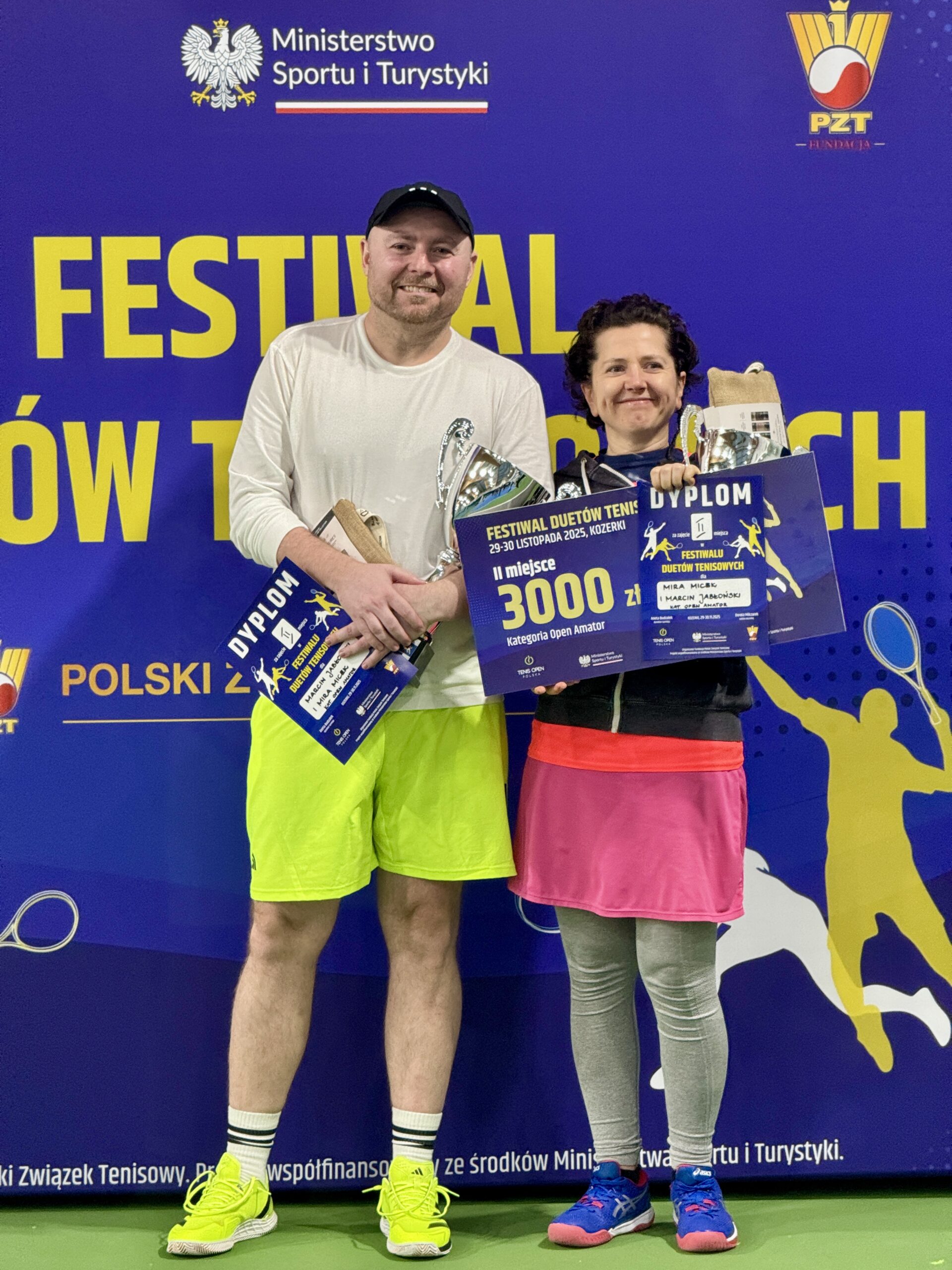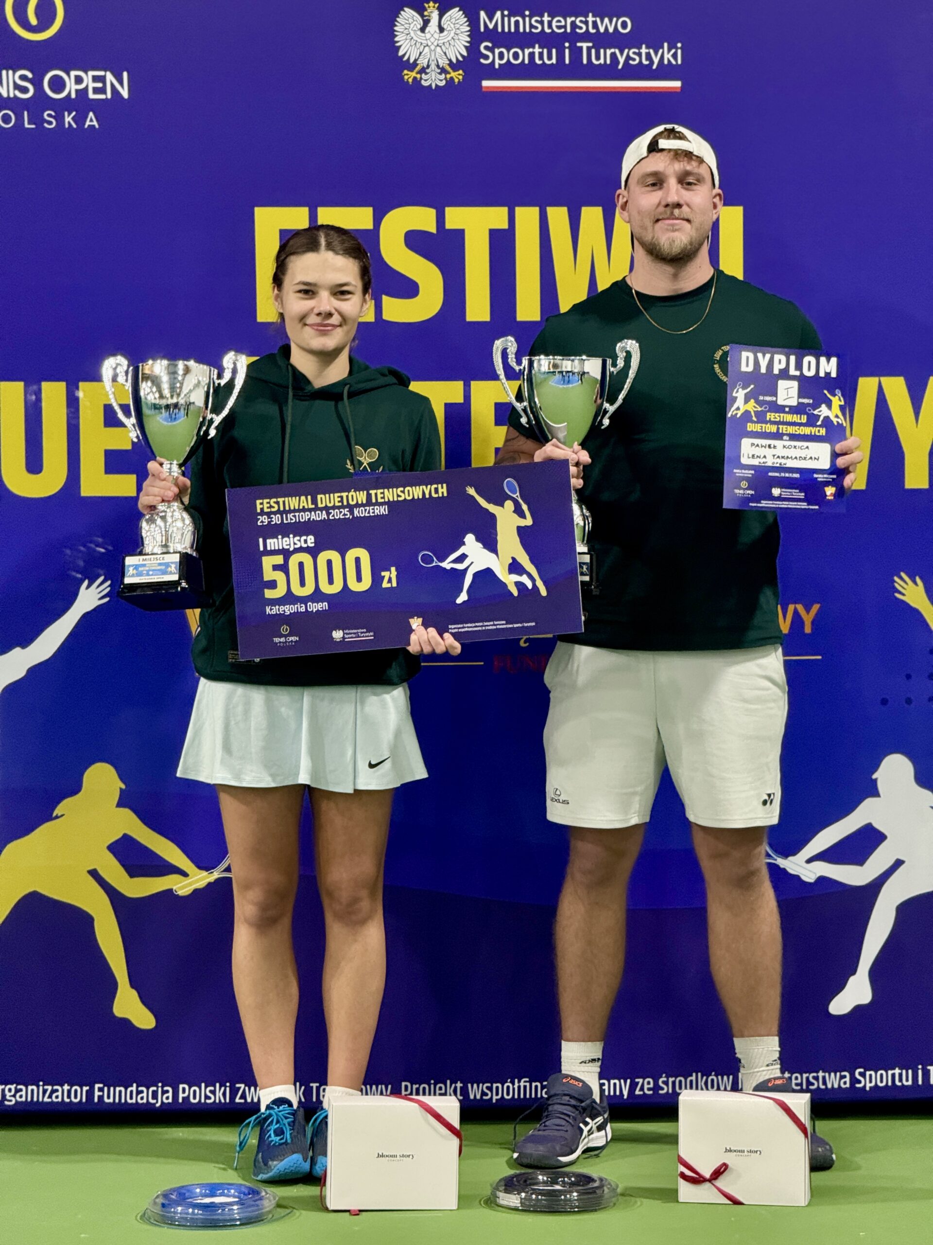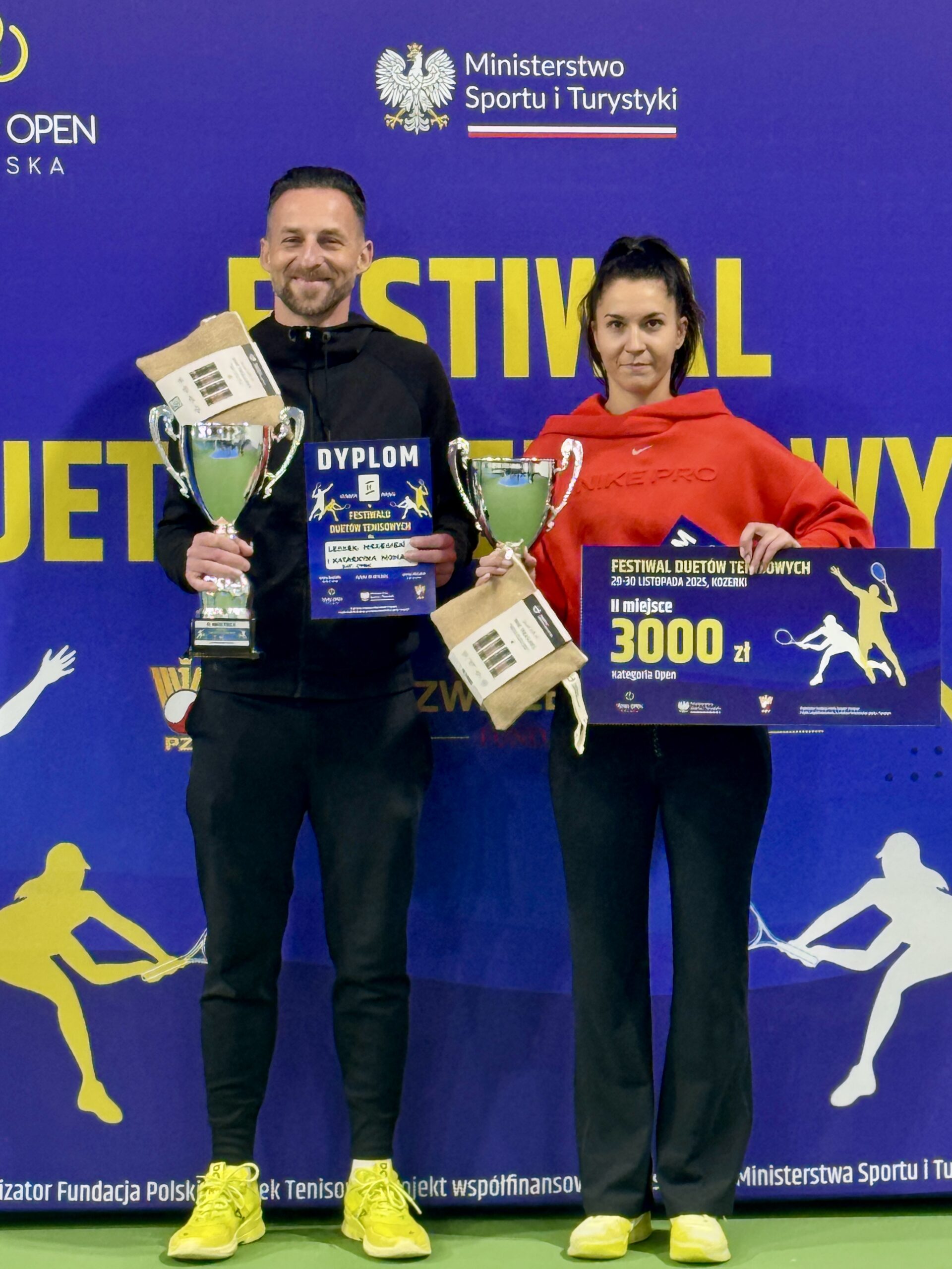 W dniach 29-30 listopada 2025 r. na kortach Tenis Kozerki odbył się Wielki Finał Festiwalu Duetów Tenisowych, który zgromadził nie tylko najlepsze drużyny, ale również szerokie grono kibiców oraz przedstawicieli środowiska tenisowego. W finałowych starciach nie brakowało długich wymian, zaciętej walki o każdy punkt oraz efektownych zagrań. Kibice mogli podziwiać zarówno zgrane duety z kategorii open, jak i ambitnych i świetnie grających reprezentantów kategorii open amator. W kategorii open bezkonkurencyjni okazali się reprezentanci województwa mazowieckiego Lena Takmadżan i Paweł Kozica, którzy od pierwszego meczu prezentowali tenis na najwyższym poziomie. W finale spotkali się z parą Katarzyna Nowak i Leszek Wrzesień, którzy również startowali w eliminacjach w Ożarowie Mazowieckim.